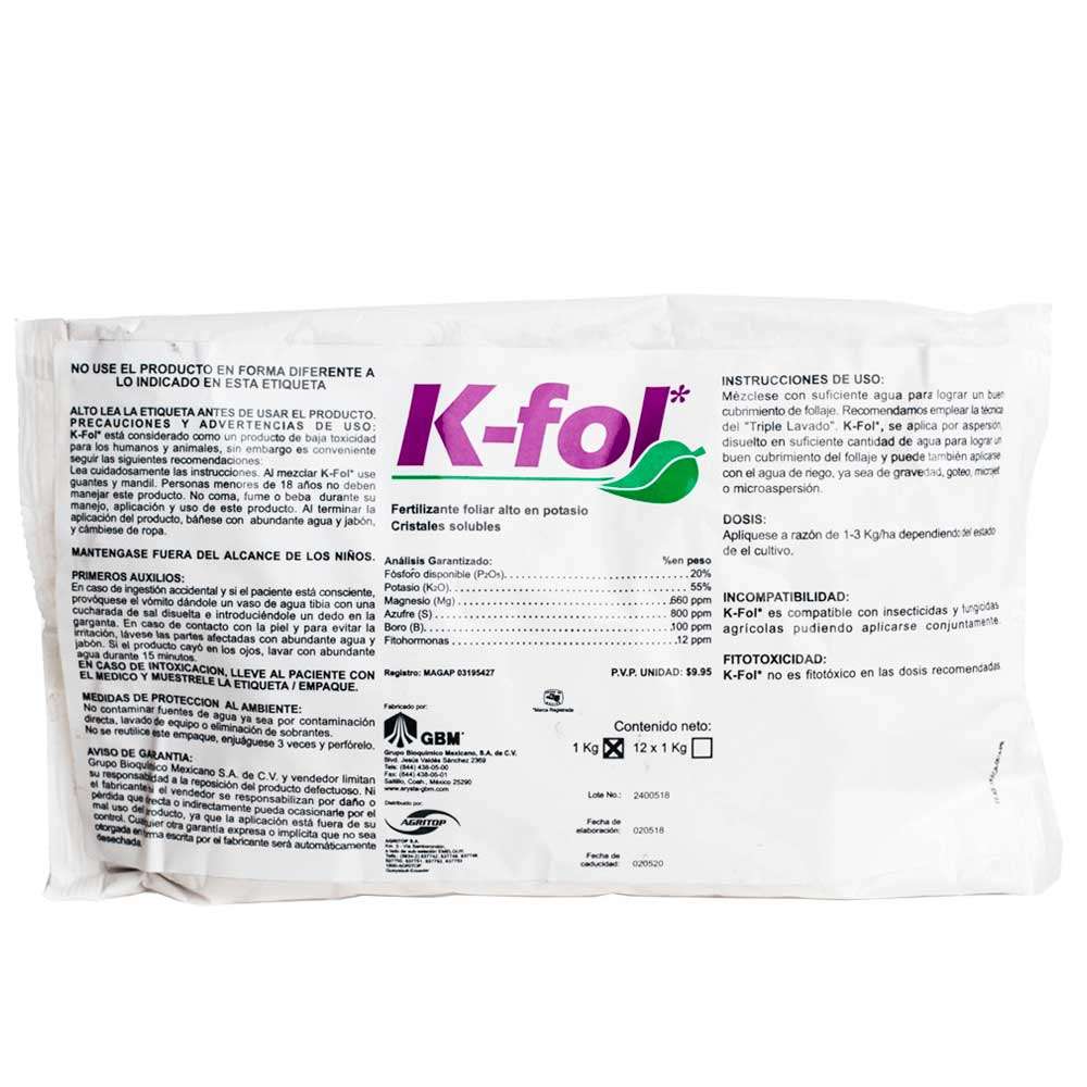 Se utiliza en la etapa reproductiva de los cultivos para lograr un mayor rendimiento, así como mejor consistencia, calidad y tamaño de los frutos. Incrementa la translocación de fotosintatos hacia los órganos reproductivos como frutos, tubérculos, bulbos y granos.