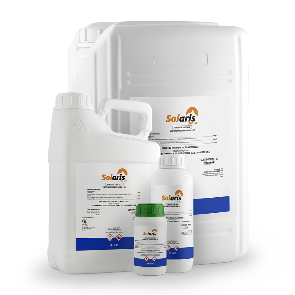 SOLARIS 500 SC es un fungicida de acción preventiva-curativa y erradicante. Se recomienda aplicarlo con la aparición de los primeros síntomas de la enfermedad y cuando las condiciones ambientales favorezcan el desarrollo de la misma.