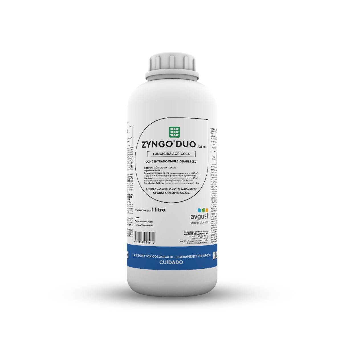 ZYNGO® DUO 425 EC, es un fungicida que se caracteriza por tener propiedades sistémicas con acción curativa, erradicante y preventiva, se absorbe por raíces y hojas. Está compuesto por los ingredientes Propamocarb HCL y Metalaxil. ZYNGO® DUO 425 EC, tiene un complejo mecanismo de acción al inhibir la síntesis de lípidos y la síntesis de ácidos nucleicos al inhibir la enzima ARN-polimerasa 1; suprime la formación de esporangios, el crecimiento micelial.